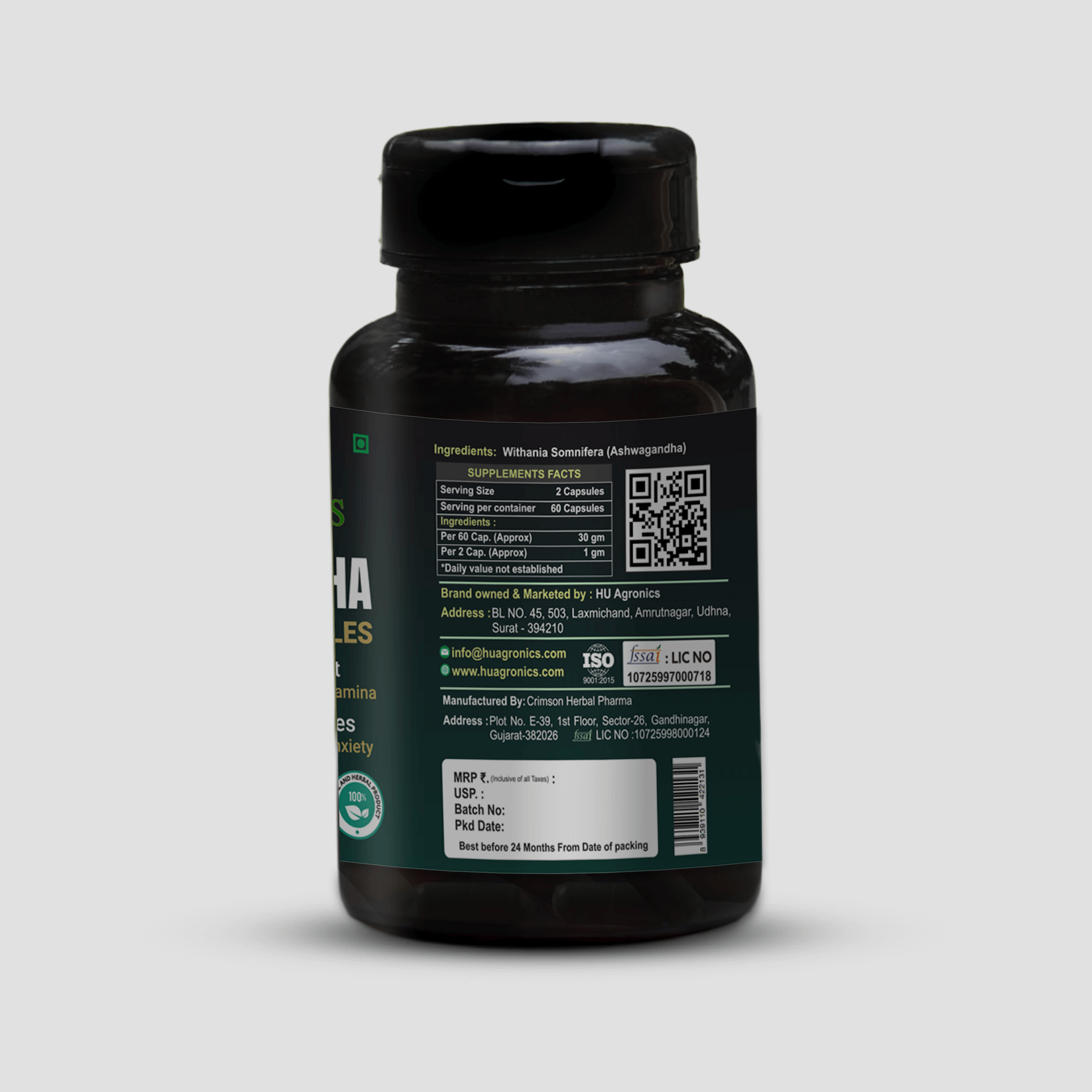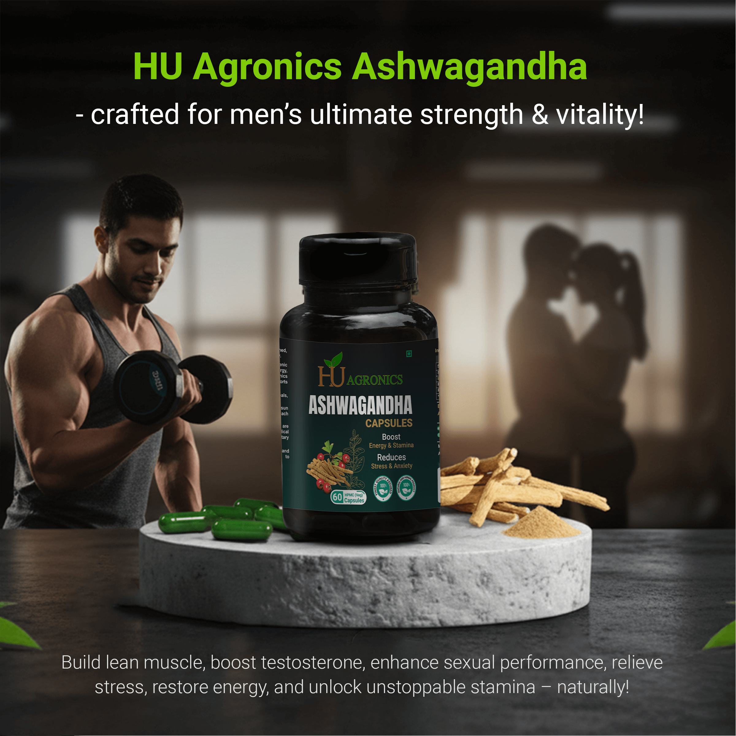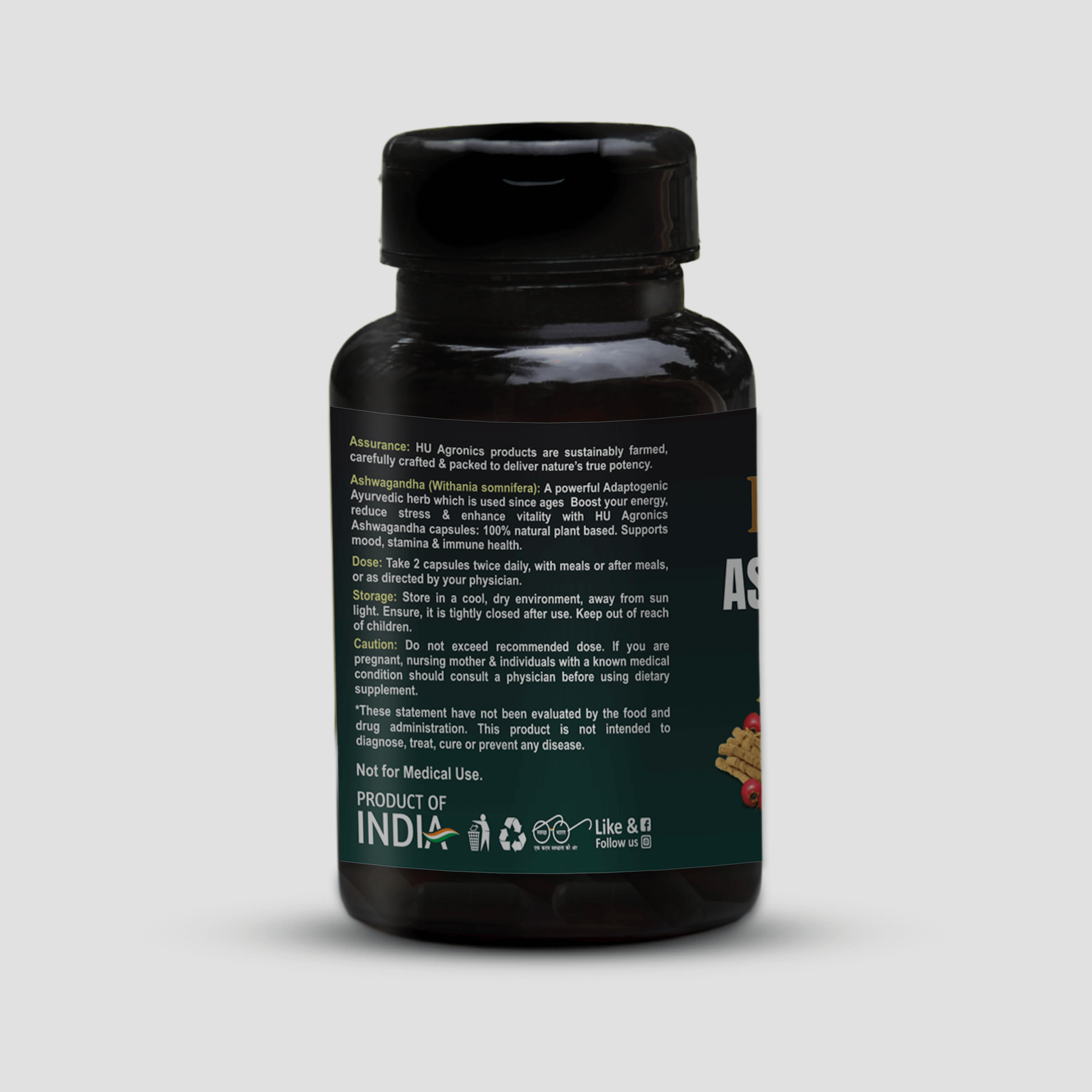 Balance your mind, body, and energy with HU Agronics Ashwagandha Capsules, made from 100% pure and natural Ashwagandha root powder. Known as Withania Somnifera, Indian Ginseng, or Winter Cherry, Ashwagandha is one of the most powerful herbs in Ayurveda, used for over 3,000 years to restore vitality, calm the mind, and fight fatigue.